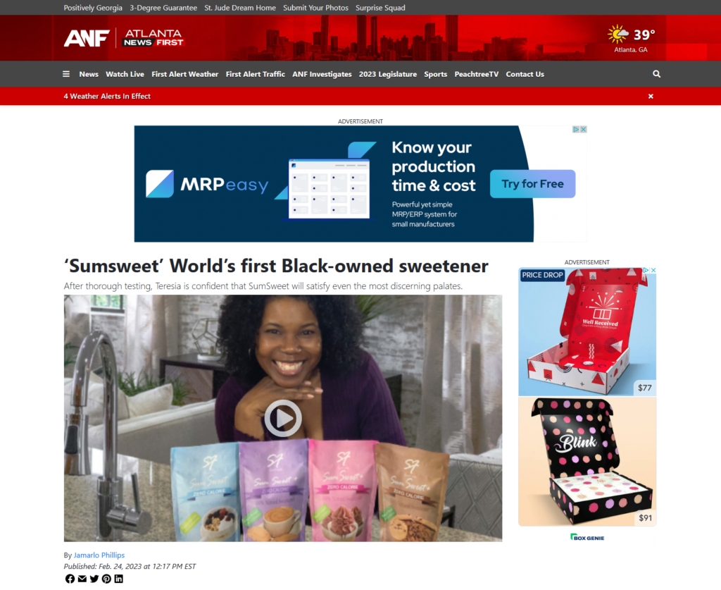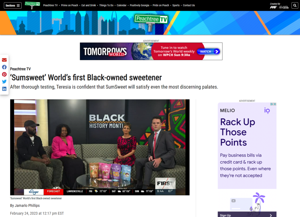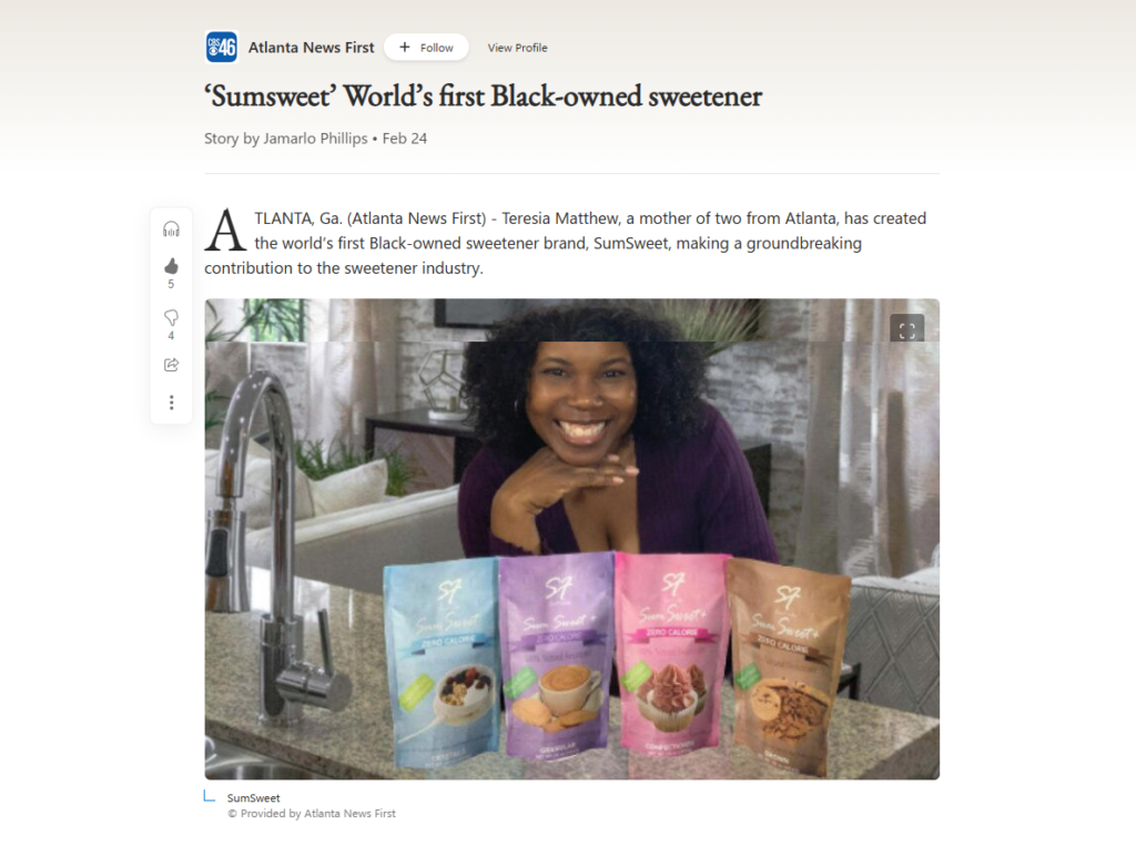 Press & Other Mentions First News Morning Show ‘Sumsweet’ World’s first Black-owned sweetener – PeachtreeTV Quoted Quoted MSN Health Nutrition Minority Report TV *HOW TO CUT SUGAR FROM YOUR DIET* with SumSweet, Black-Owned #NaturalSweetener WNAF TV QuotedNotable mention