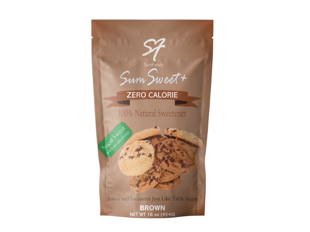 Zero-calorie SumSweet+ Brown has a nutty, caramel flavor, moistness, and subtle molasses flavor. It’s ideal for cookies, shortbread, spiced cakes, brownies, and crumble toppings.